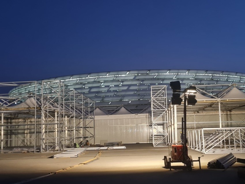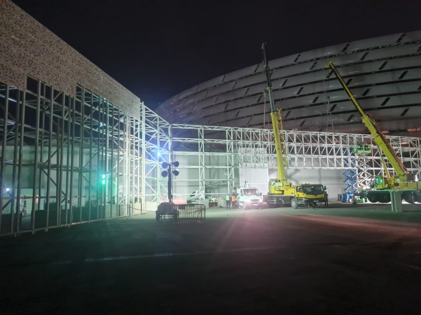Görülən işlər: COP29 VIP giriş, Q1–Q2 giriş tağıları, dəmir-beton, sandwich panel konstruksiya və reklam yazı işləri