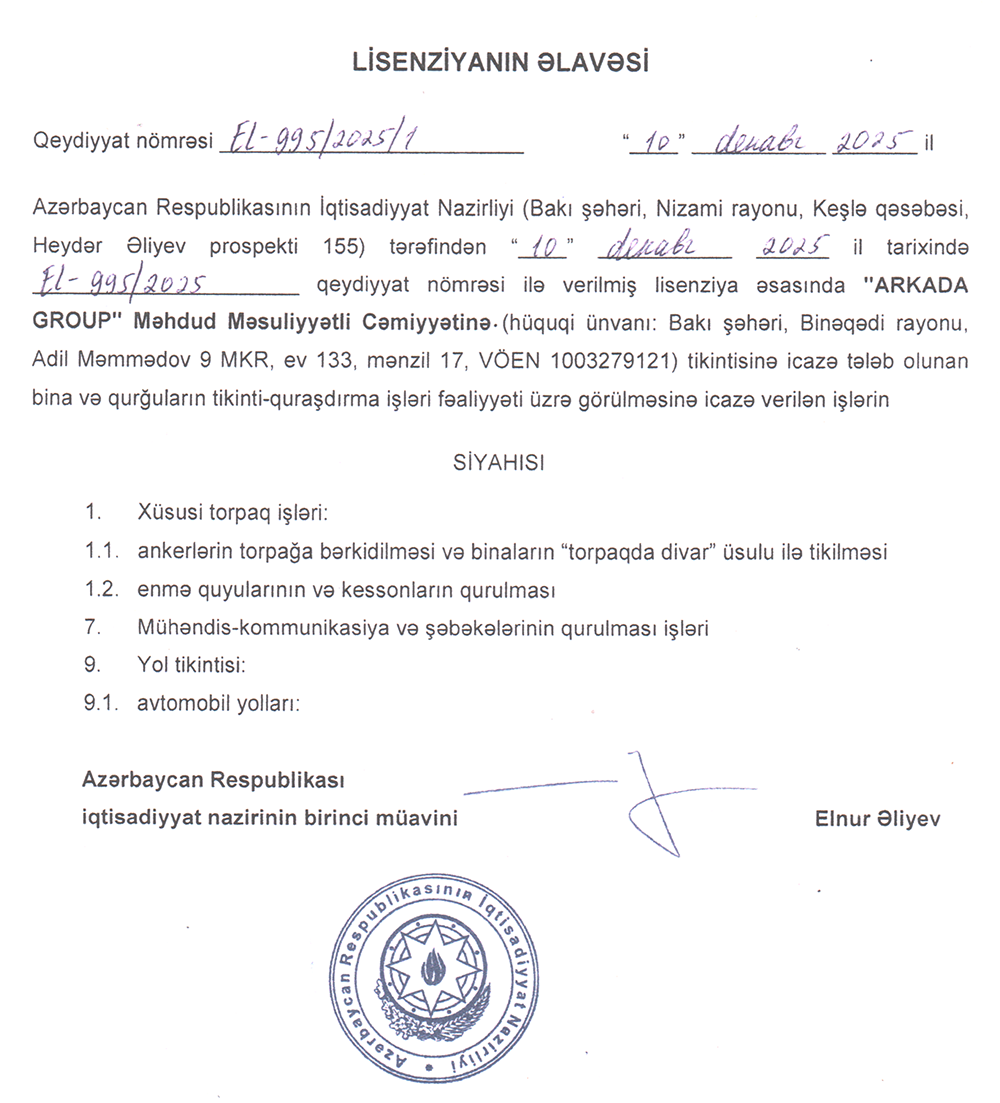 Arkada Group, inşaat sektorunda uzun illərin təcrübəsinə malik şirkətdir.